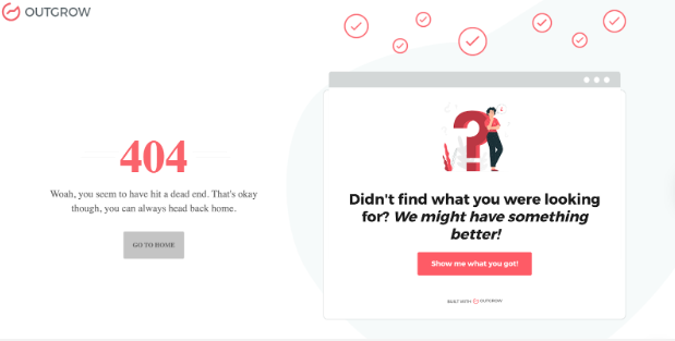 • Outgrow’s product is quizzes, calculators, and forms, and they use that strength on their 404.