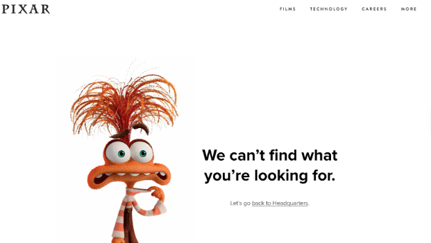 • Pixar plays into the character’s personality, showing they care you landed on the wrong page.