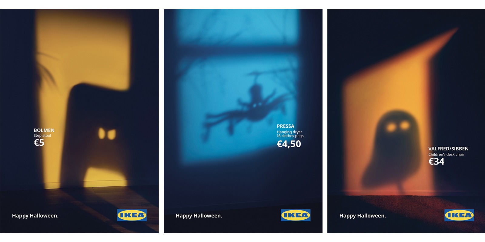 IKEA used clever lighting to make everyday furniture (chairs, racks, and stools) cast shadows that looked like monsters, spiders, and ghosts.